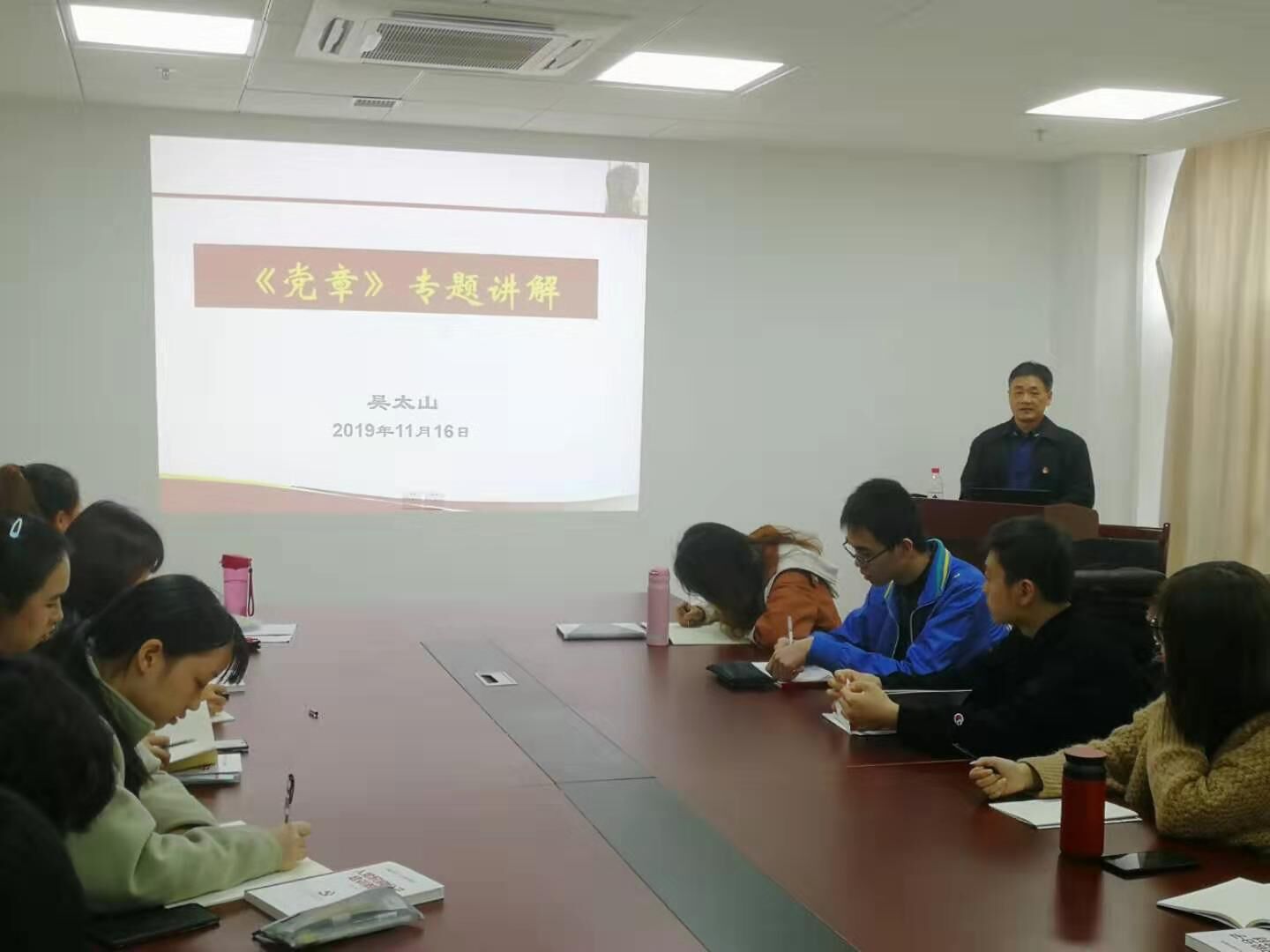 11月16日下午,英国365集团公司第66期入党积极分子培训班第二讲在东区教学综合楼A1505会议室举行。本次党课由学院党委书记吴太山讲授《党章》专题。院学生党建办主任孙宇涛主持。